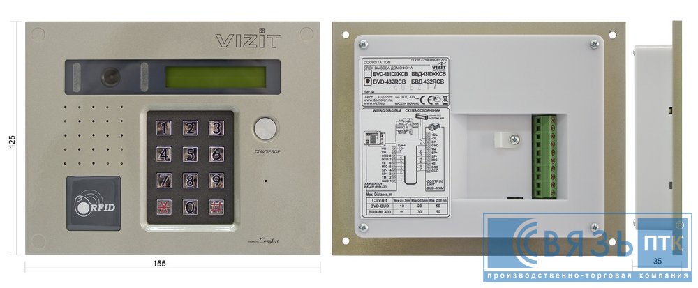 Блок вызова для совместной работы с БУД-420M и БУД-420Р. Встроенный считыватель ключей VIZIT-RF3 (RFID-13.56МГц).Обеспечивает дополнительную защиту от несанкционированного администрирования домофона. , ЖК дисплей, кнопка "Консьерж". Встроенная телекамера цветного изображения с функцией "День-ночь" (700 tvl, PAL, 0 Lux / подсветка для телекамеры, объектив BOARD 120°). Рекомендуется использовать совместно с монтажным комплектом МК-432, MKF-432.